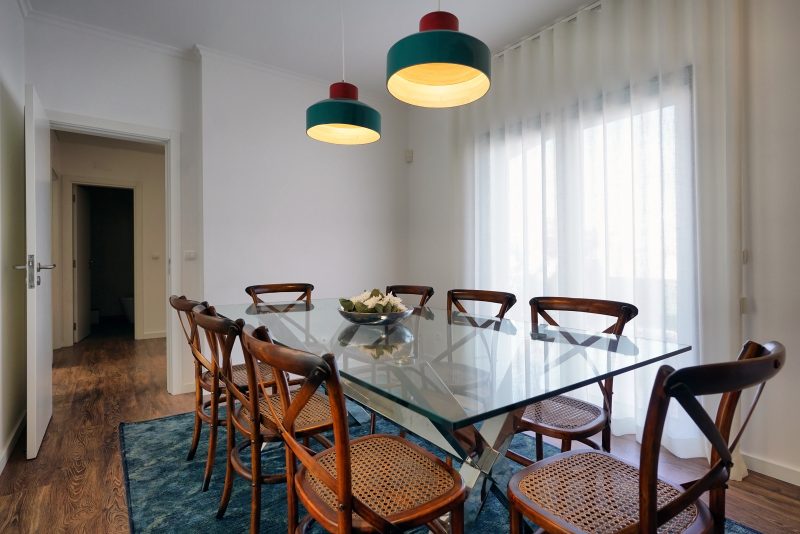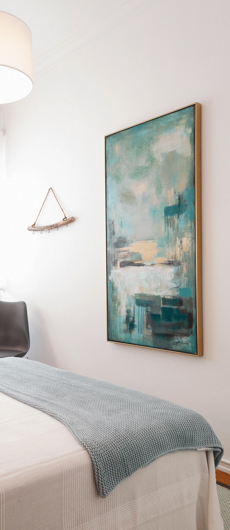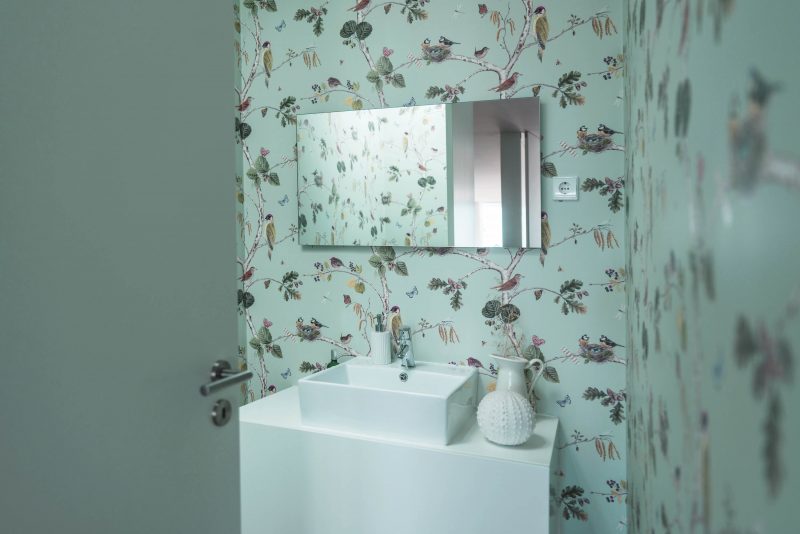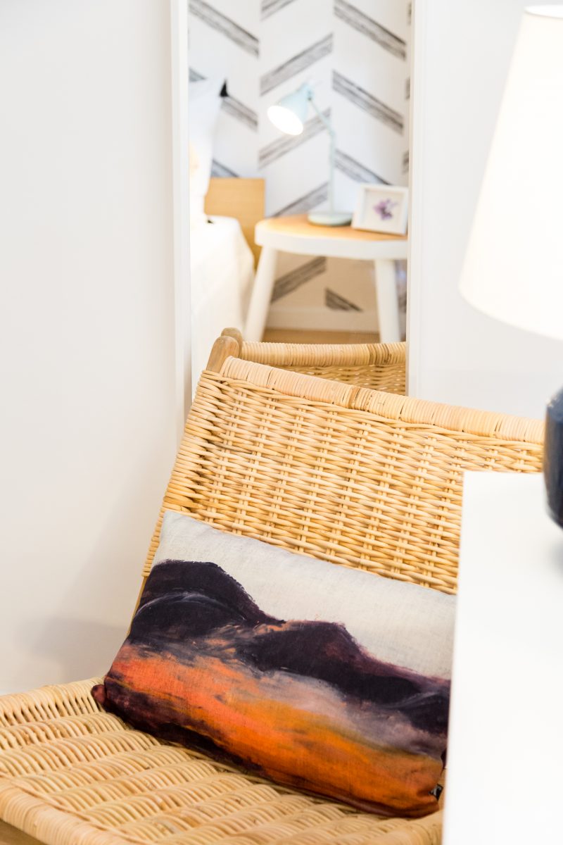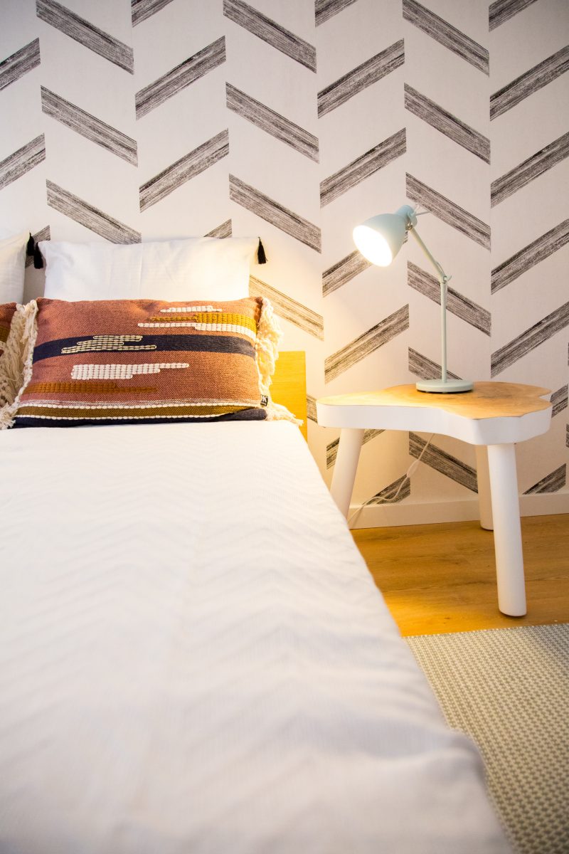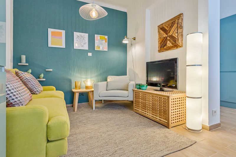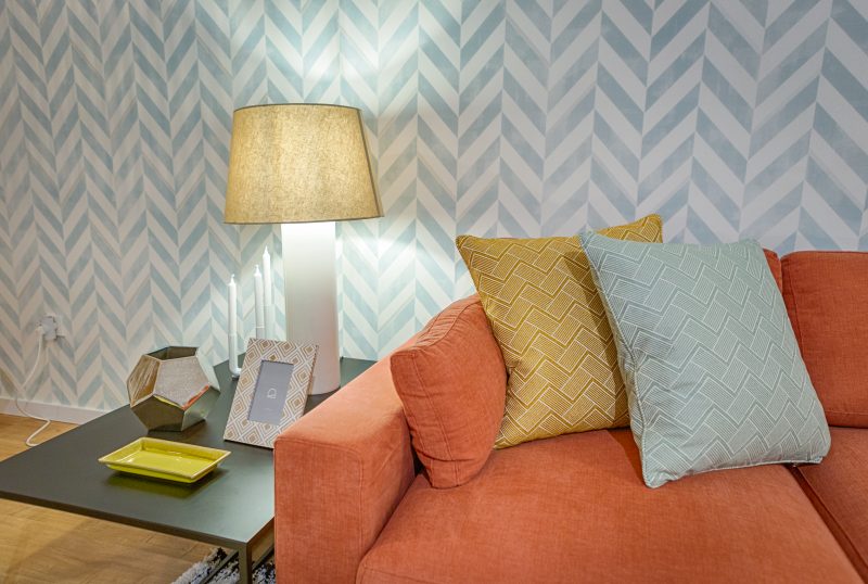 Se optar por um padrão ou cor mais arrojada, coloque mobiliário e acessórios sóbrios. Se optar por uma solução mais discreta e simples, o mobiliário que fica junto à parede intervencionada pode ser mais vivo e com mais cor.