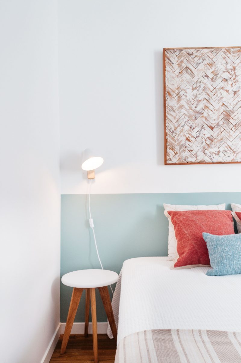 Uma simples pintura numa parede destacada modifica significativamente um espaço, podendo arriscar com uma cor mais forte ou com papel de parede mais ousado.