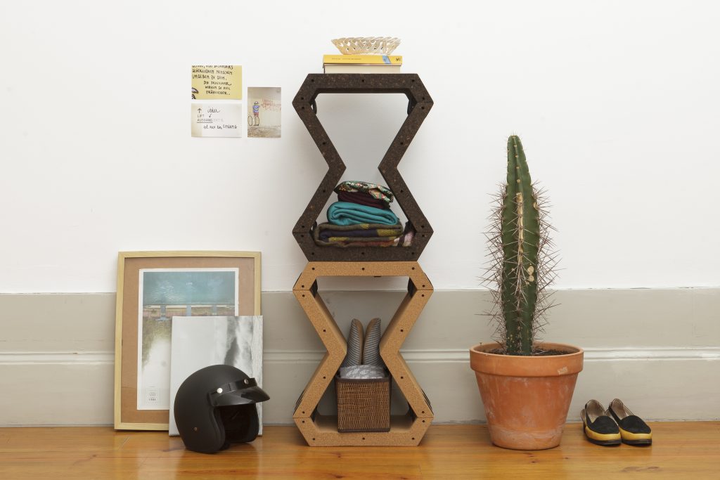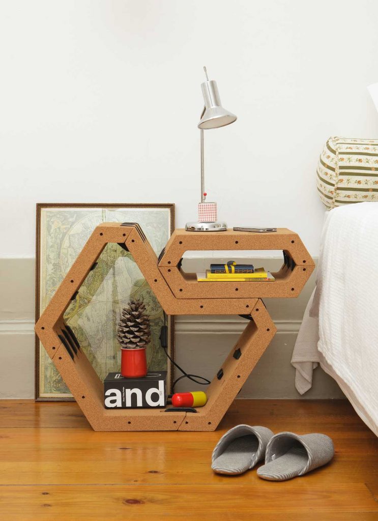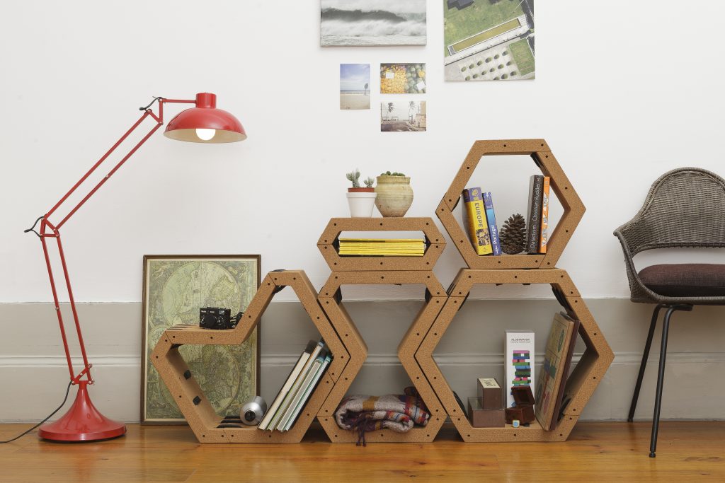 As estantes modulares do COMO são feitas em cortiça, uma matéria-prima tão nacional, que hoje se encontra (felizmente) bastante valorizada.