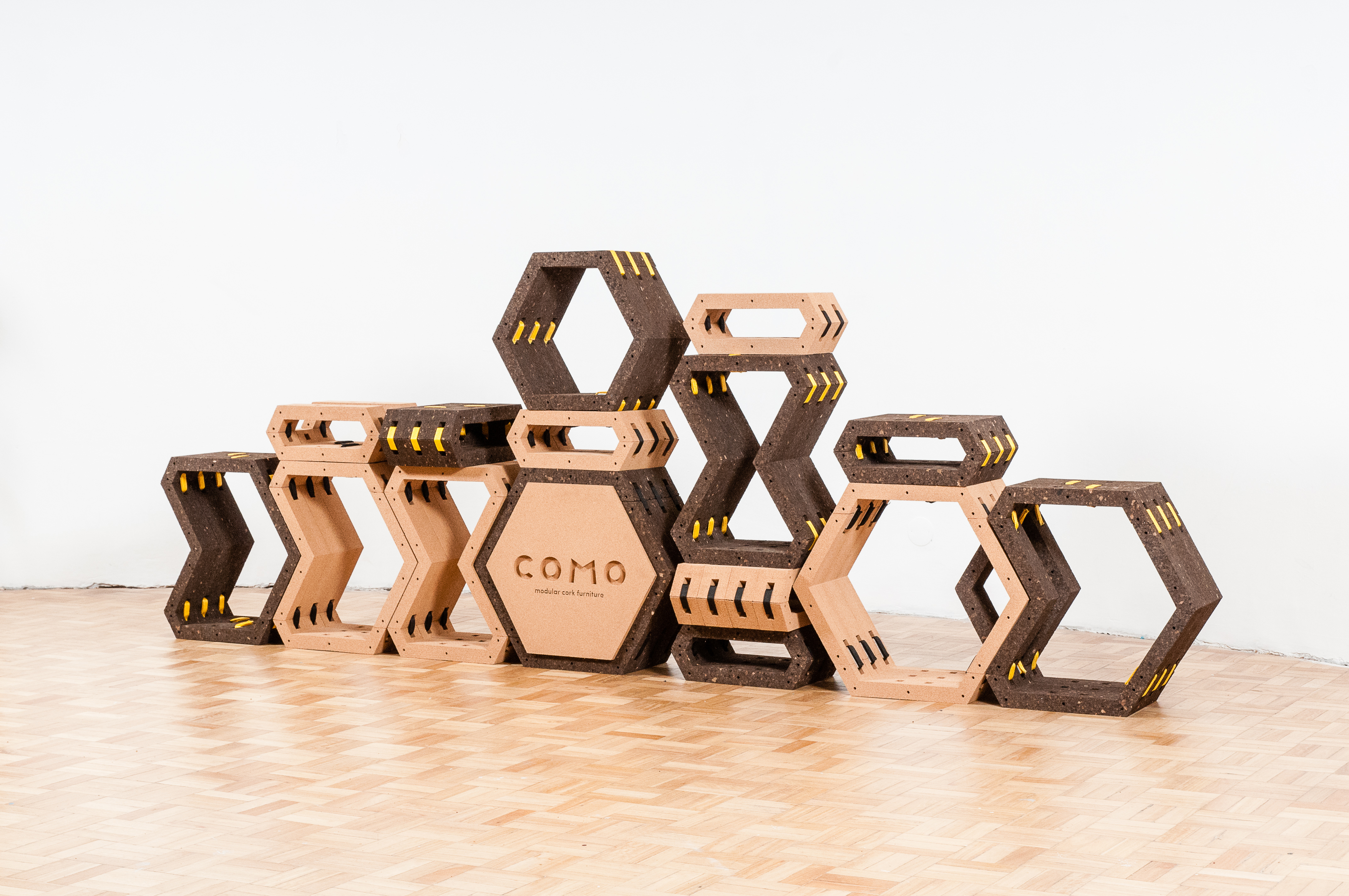 A ideia do COMO – COrtiça MOdular – nasceu a partir do jogo: criar elementos soltos, que se encaixam e deixam reproduzir várias formas. Gostava de garantir a composição versátil e personalizável. Inserir uma parte lúdica no produto final, assegurar a montagem fácil, ter o transporte de forma simples mas também optimizar a produção para ser mais eficaz.