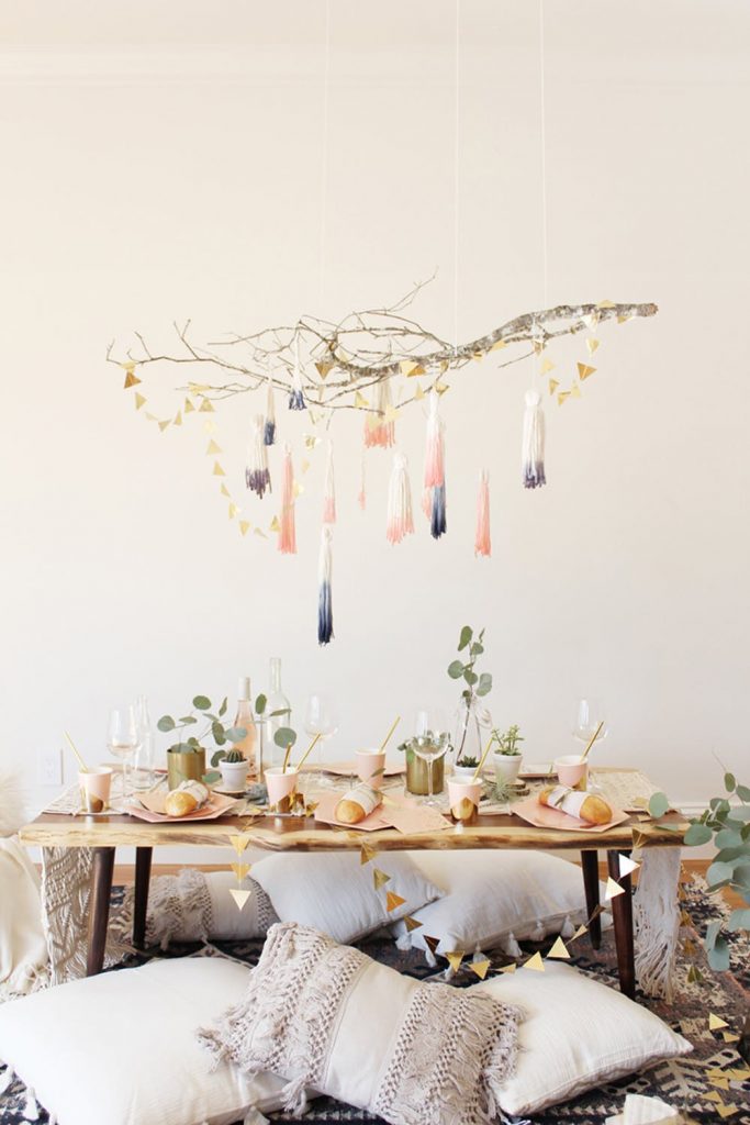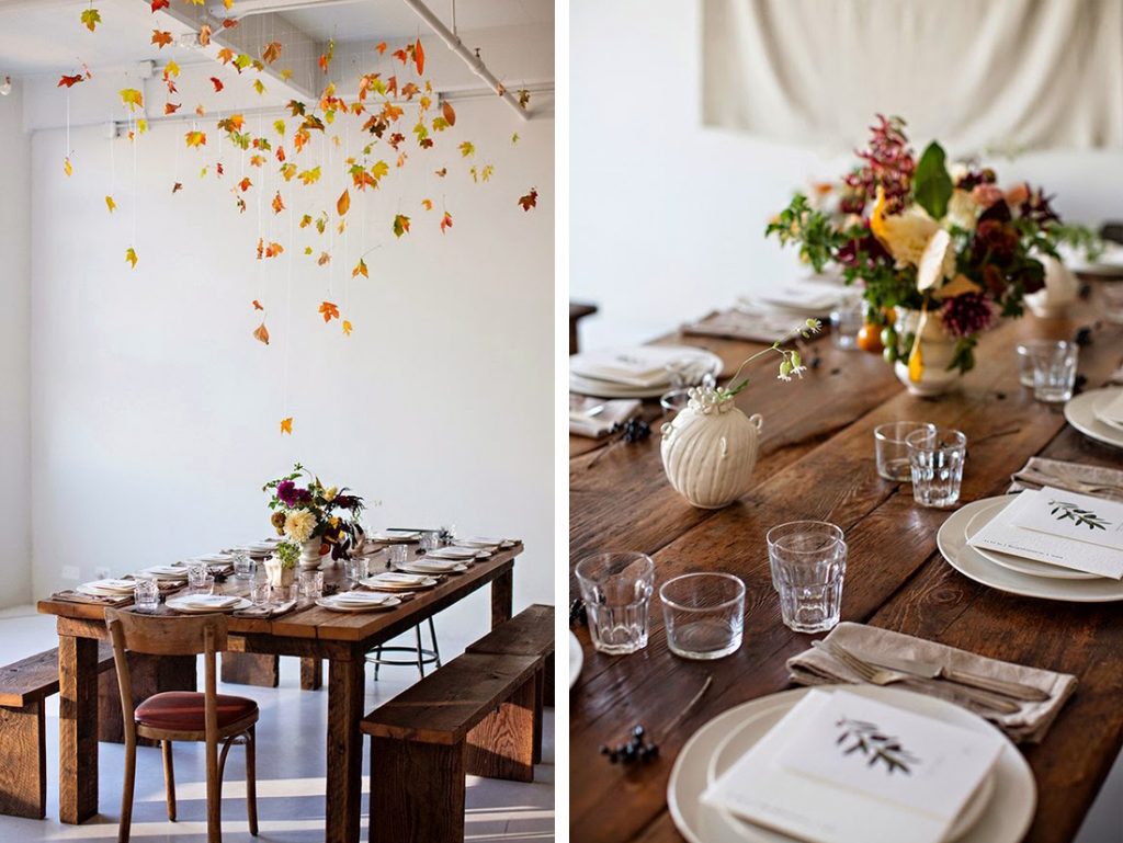 Dê um ar natural e não se fique apenas pelo centro de mesa, ou o lugar individual da cada um dos seus convidados, pensa no espaço como um todo e espalhe a decoração para o tecto, paredes e aparadores ou qualquer móvel que esteja por perto.
