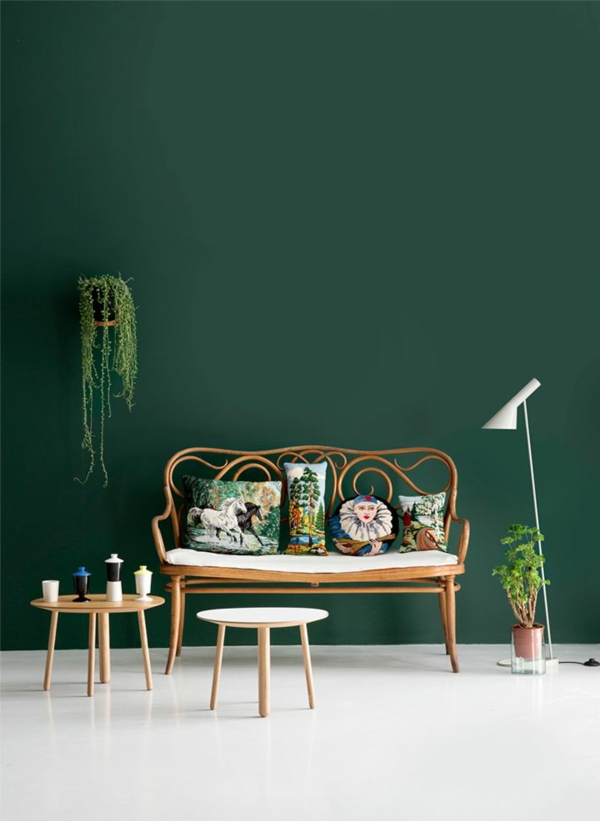 Poderá ser mais escuro do que o verde sálvia e do que teríamos coragem para usar, mas conjugado com outros tons de verde, com texturas como o veludo, com materiais leves como o pinho, ou mesmo a madeira mais tratada e escura tira dele o melhor do tom.