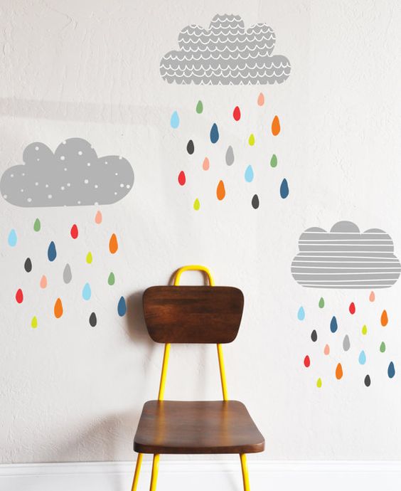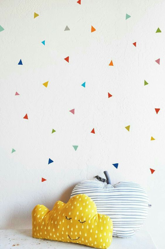 As técnicas são muitas: desenhar, pintar, escrever, aplicar papel, aplicar stencil, … Pinte meia parede, ou crie padrões geométricos, use a imaginação, escolha as cores cuidadosamente e crie o espaço de sonho para as crianças.
